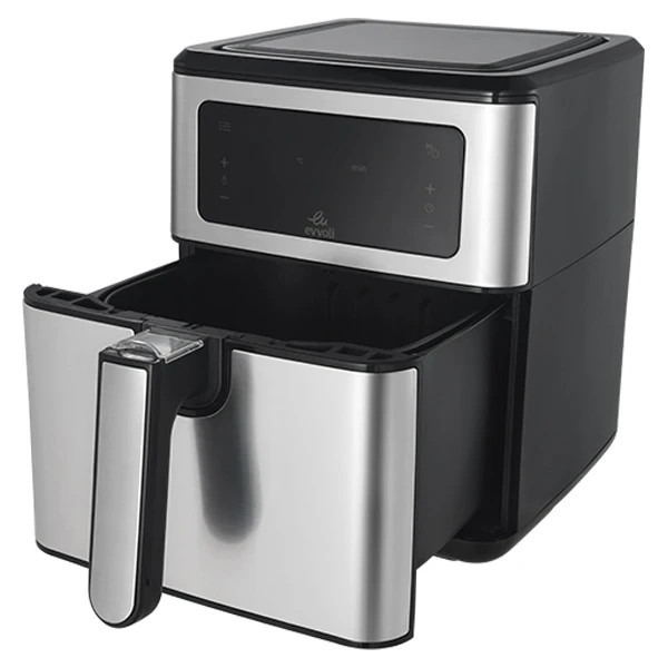امروزه با افزایش مشغله و افزایش رستوران ها و فست فود ها و افزایش هزینه روغن، کمتر جایی پیدا میکنید که غذای رژیمی و کم چرب را برای شما سرو کند. سرخ کن های بدون روغن از محصولات جدید بازار بوده که علاوه بر صرفه جویی در مصرف روغن ،غذای شما را بدون روغن ،رژیمی و کاملا سالم سرخ میکند. سرخ کن هوشمند بدون روغن ایوولی مدل EVKA-AF5508D از سری تولیدات جدید شرکت ایوولی با طراحی و مهندسی شده ایتالیا و ساخت چین میباشد. این محصول با دارا بودن ظرفیت 5.5 لیتر از سرخکن های نسبتا سایز بزرگ بازار بوده که با توان 1700 وات به راحتی از پخت و سرخ کردن تمامی مواد غذایی بر می آید. صفحه کنترل این محصول تمام لمسی بوده که علاوه بر تنظیم دستی زمان و میزان حرارت ،امکان شروع 8 برنامه پخت پیش فرض مانند یخ زدایی ،سیب زمینی ،مرغ،ماهی ،نان ،کیک ،میگو و… را دارا میباشد. سبد و بدنه این محصول از نوع استیل ضد زنگ بوده که طول عمر محصول را افزایش میدهد.