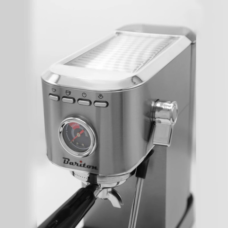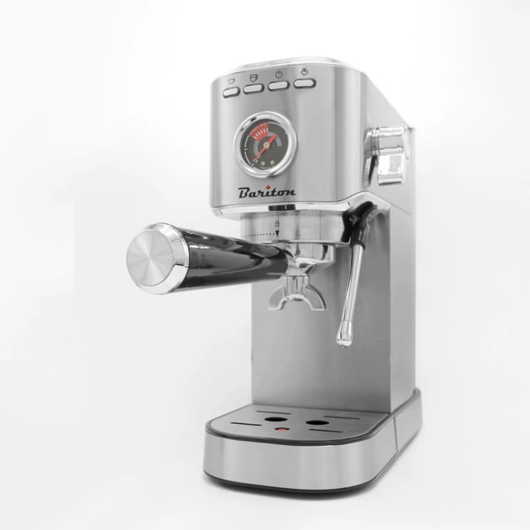 اسپرسوساز باریتون 213502 یکی از بهترین دستگاه قهوه ساز و bariton با قیمت خرید مناسب و توان 1350 وات و فشار بخار 20 بار تحت لیسانس کانادا با طرز کار راحت است. قهوه ساز باریتون مدل BEC 213502SX یک دستگاه با کیفیت و قدرتمند است که به شما این امکان را میدهد تا در خانه یا در فضای کافه، به راحتی قهوهای با کیفیت و عالی تهیه کنید. این دستگاه با طراحی زیبا و ویژگیهای کامل، جزو بهترین اسپرسو سازهای حرفهای موجود در بازار یه شمار می آید. تفاوت اسپرسوساز باریتون 213501 با مدل 213502 تنها در جای دکمه های آنها است. با این دستگاه اسپرسوساز باریتون 213502 میتوانید قهوه، اسپرسو، لاته، کاپوچینو و دیگر نوشیدنیهای قهوهای را از قهوهی فوری یا با استفاده از دانههای قهوهی تازه تهیه کنید. این دستگاه اسپرسو ساز با داشتن یک پمپ قوی و بخاردهی قوی، به شما این امکان را میدهد که قهوهی خود را در کوتاه ترین زمان ممکن و با کیفیت عالی تهیه کنید.
