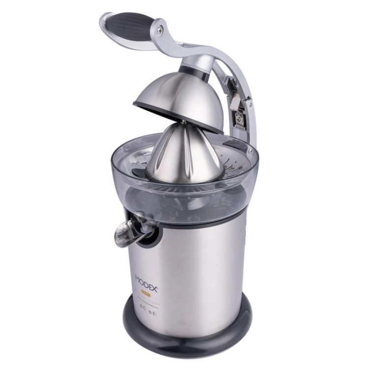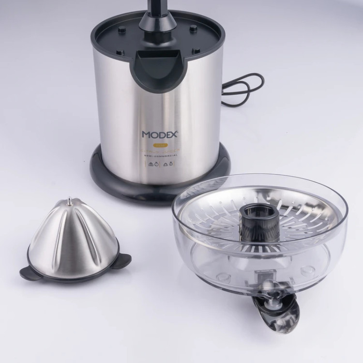 آب مرکبات گیری برقی 150 واتی مودکس JE225 علاوه بر قدرت و کارایی بالا، به بدنهای مستحکم و ظاهری زیبا مجهز شده است. بدنه، دهانه و فیلتر این محصول از جنس استیل ضدزنگ است. این محصول دارای دو مخروطی با دوسایز متفاوت و قطعات جداشونده برای سهولت استفاده و شست و شو می باشد. برای استفاده از دستگاه نیازی به داشتن مهارت خاصی ندارید و با فشار دادن اهرم محصول، موتور شروع به کار خواهد کرد. پایه های این دستگاه نیز به شکلی طراحی شده که در هنگام استفاده حالت لغزندگی نداشته باشد. دهانه استیل این محصول نیز به شکلی طراحی شده که ضدچکه است و چیزی از آن بیرون نمی ریزد. در کل اگر به محصولات با کیفیت و خوش ساخت علاقه دارید، مدل JE225 را حتما در لیست انتخابتان قرار دهید.